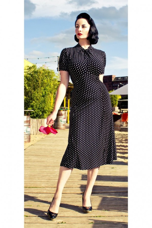 Amie Classy Black Vintage Polka Dot Flared Tea dress