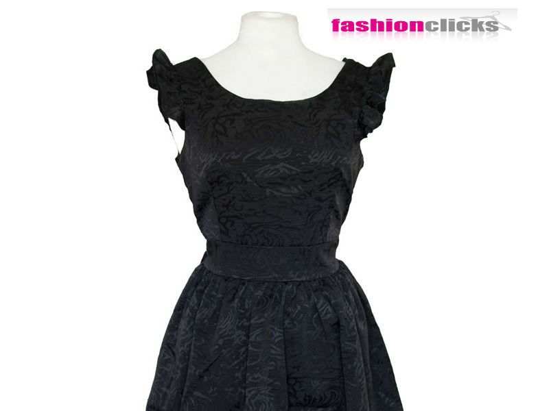 NEW 1980S BLACK RETRO PROM PARTY PUFFBALL RUFFLED SLEEVELESS BROCADE DRESS