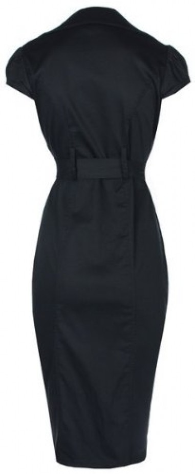 Secretary-style 1950s black pencil wiggle dress back